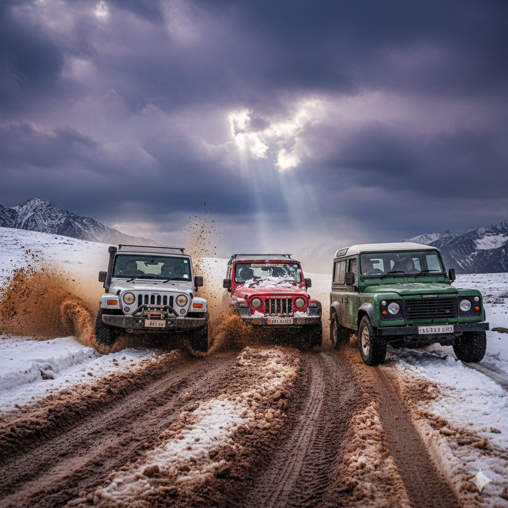 Imagine walking across fresh snow at sunrise, driving through muddy mountain tracks, watching golden sunsets over frozen ridgelines, and relaxing by a warm bonfire under a sky full of stars. With Theyatriz, North India Winter Adventure Tours turn these moments into reality.