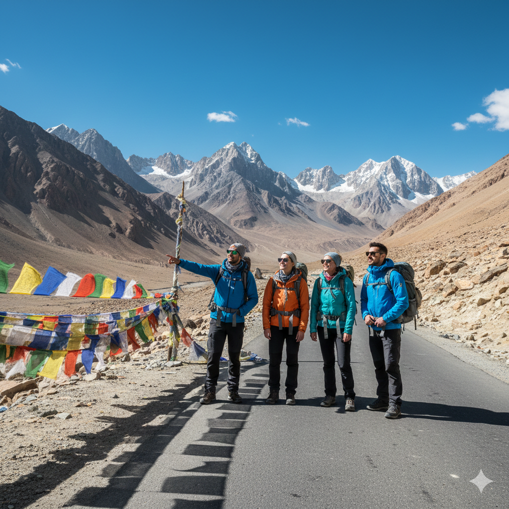 Traveling in a group here adds comfort, excitement, and shared exploration — especially on long trans-Himalayan routes.